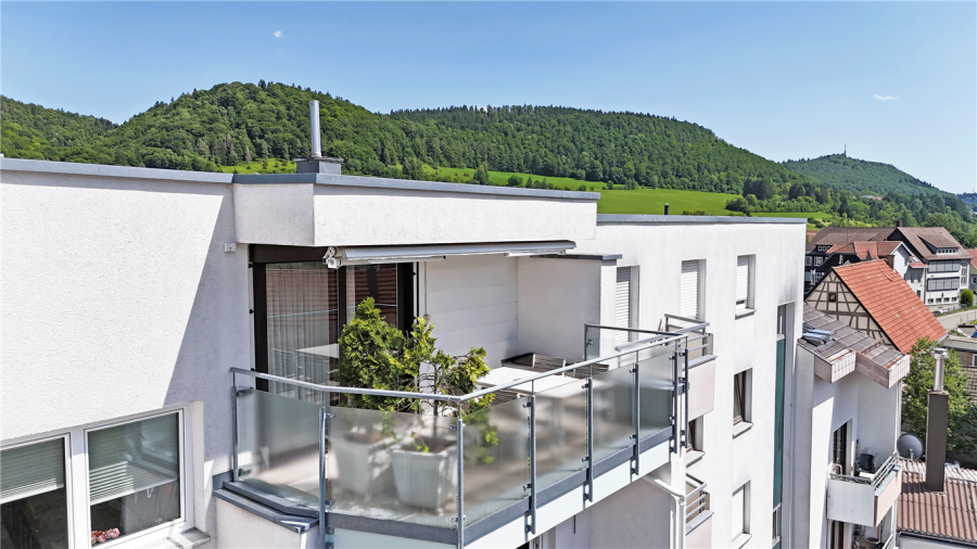 Ca. 60 m² Außenflächen erweitern den Lebensraum nach draußen – mit Traumaussicht für entspannte Stunden.